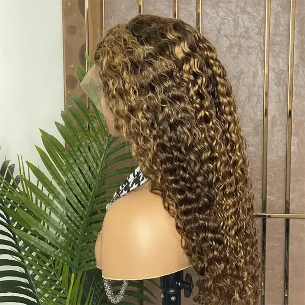 13 x 4 Transparent Glueless Brown with Highlights 100% Raw Human Water Wave Wig 200% Density